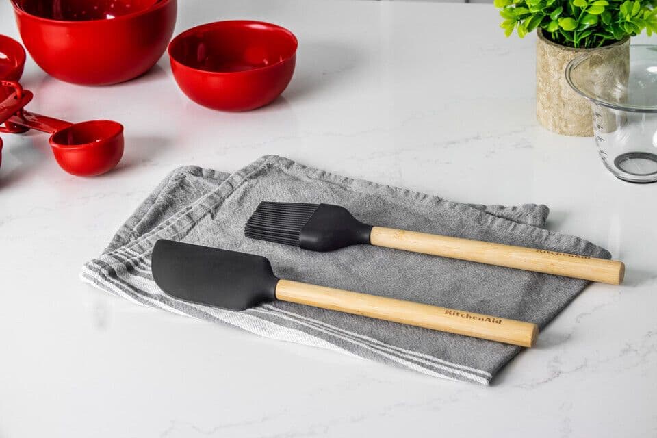 KitchenAid Bamboo Scraper Spatula with Silicone Head, Black, 30 cm, Carded