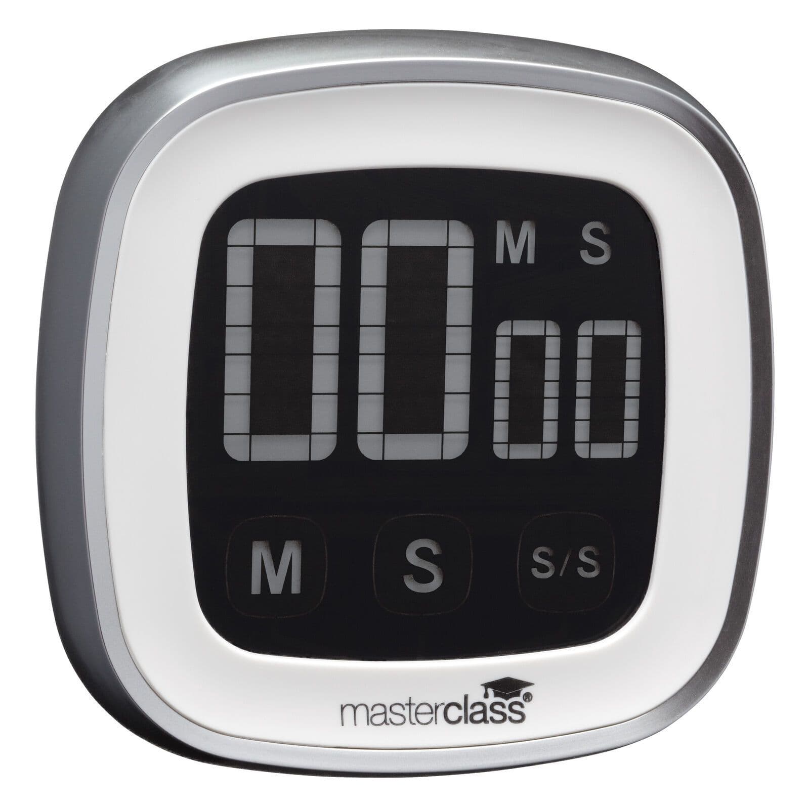 Easy to use and easy to read with a large touch screen and trendy flip style digital display. This one hundred minute count up and countdown timer also features a magnetic fixing for attaching to fridges or microwaves, so it not only looks good but is always to hand. With a white digital display on a black face and brushed silver coloured casing. Batteries required.